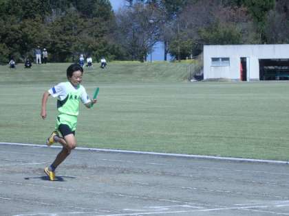 アンカーでトップに立ち、組内で一位でした。