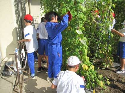 9月7日(木)にセットしたアサガオの花の受粉の実験の結果を確認しました。