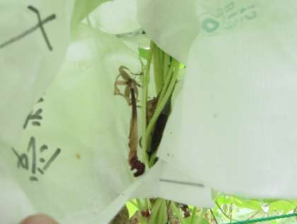 受粉させた花には実ができていましたが、受粉させなかった花は実ができずに枯れていました。このことから、植物は、受粉するとめしべの元がふくらんで実ができることがわかりました。