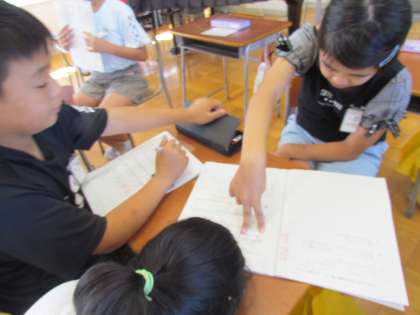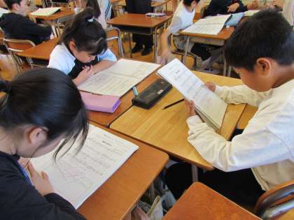 曲についてどんな風に歌えばいいかを考えていました。グループになって自分の考えを相手に伝え、相手の考えもよく聞きながら学習に取り組んでいます。