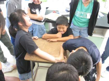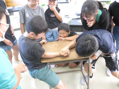 うでずもうをするとき、うではひじのところで曲がりました。うでにはかたいほねとやわらかくて力を入れるとかたくなるきん肉がありました。