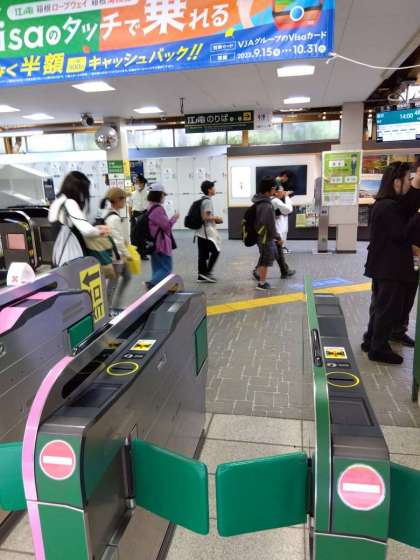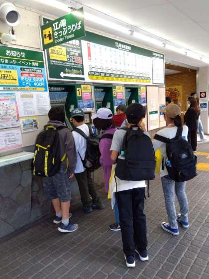 1班が鎌倉駅から江ノ電に乗りました。皆で協力して切符を買いました。