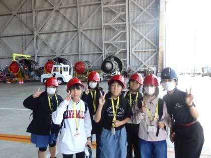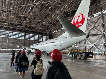 厳重なセキュリティチェックを受けて機体格納庫に潜入です。