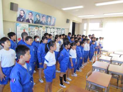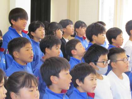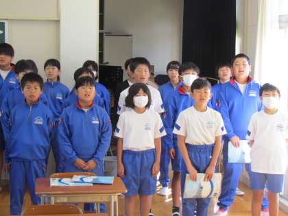 小中音楽発表会に向けて、音楽の授業の中で少しずつ合唱の練習をしています。今日は初めて3学年で一緒に練習をしました。朝から音楽室に元気のいい声が響きました。