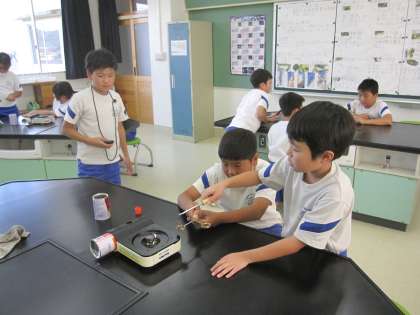 11月2日(木)4年理科 ものの温度と体積(その2) 公開日 2023/11/02 更新日 2023/11/02 2025できごと 金ぞくも、空気や水と同じように、あたためられると体積が大きくなり、冷やされると体積が小さくなりました。また、金ぞくの体積の変化は、空気や水にくらべてとても小さいことがわかりました。
