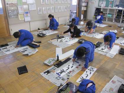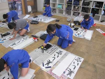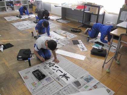 文字の大きさに気をつけて、字形を整えて「美しい空」を書きました。