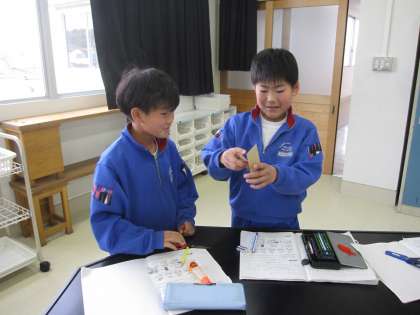 1月11日(木)3年理科 じしゃくのふしぎ(その1) 公開日 2024/01/12 更新日 2024/01/12 2025できごと じしゃくに引きつけられるか、引きつけらないかを、くらべながらしらべました。