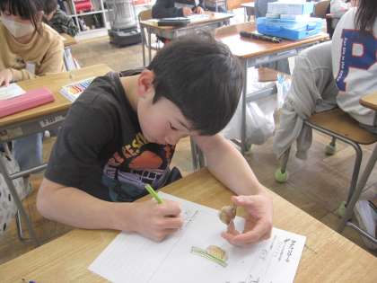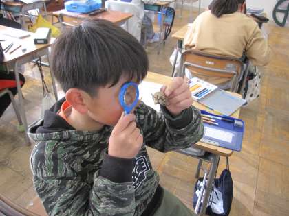 1月16日(火)4年理科 季節と生物(冬)その4 公開日 2024/01/16 更新日 2024/01/16 2025できごと らんのうはスポンジみたいなつくりをしていて、カッターで切ると、中にたまごが入っていました。