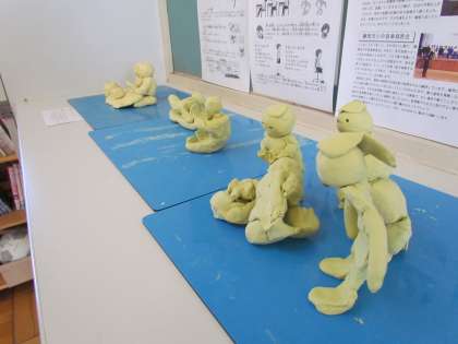 1月17日(水)2年生の作品 公開日 2024/01/17 更新日 2024/01/17 2025できごと ロッカーの上にねんどの作品が並んでいます。【冬休みの思い出】を表現しているようです。初詣に行ったときのことや家でゲームをしてゆっくりしている様子など、どれもとても上手に作ってありました。