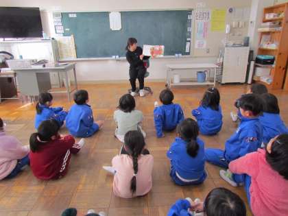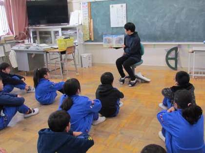 読み聞かせの時間は、東小っ子は、集中してとてもよく聞いています。大きくなると自分で読むことが中心になってくるので、お家でもぜひ時間をとって読み聞かせをしてもらえるとよいですね。