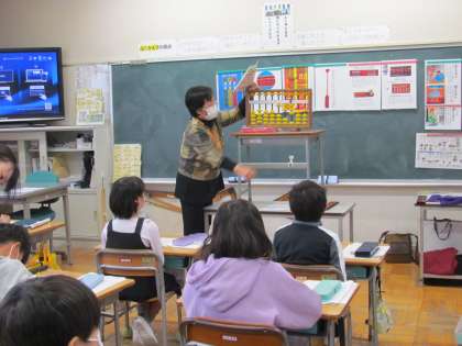 そろばん教室の先生にお世話になり、【そろばん】について学習しました。専門の先生に教えていただき、よりわかりやすく【そろばん】に取り組みことができました。