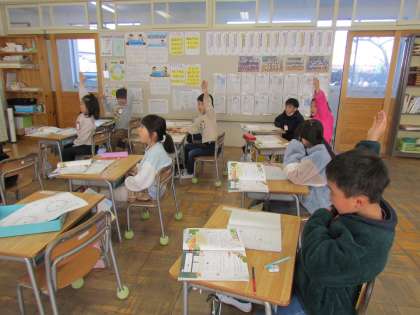 今日は問題を読んで、式を立てて、答えを出す、ということをやっていました。まずは問題を読み取るということが第一関門。その意味がわかった上で式が立てられます。第一関門を突破するのにやや苦戦していましたが、何とか答えが出せました。