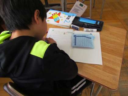 【かけ算のきまりをまとめよう】という学習です。かけ算の答えの増え方を見比べて何かきまりがないかを考えました。どんなきまりがあったかな?
