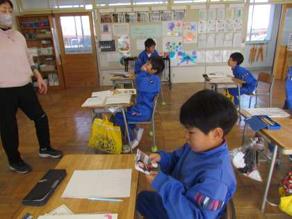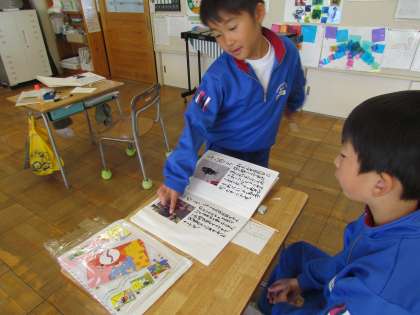 自分の小さい頃の写真を見ながら、文を書き、それを1冊の本にしています。写真を見ると成長しているのがとてもよくわかります。こちらもできあがりが楽しみです。