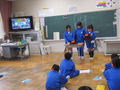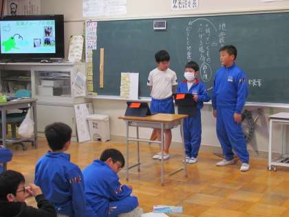 明日が最後の授業参観です。そのための練習をしている4年生です。これまでがんばって作成してきたスライドを使って、1年のまとめをしています。明日がとても楽しみですね。