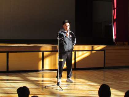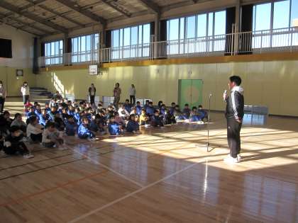 10月から東小っ子と一緒にたくさん遊んだり、勉強したりした先生が今日で本校の勤務が終わりになります。本当にいろいろお世話になりました。次の学校でもがんばってくださいね。