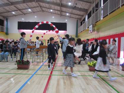 児童会本部の上級生が【歓迎の言葉】を伝えてくれました。それから5,6年生が作った花のアーチの中をくぐって、無事に入学式を終えることができました。今年も東小っ子のみんなで、明るく元気に安全に過ごしていきましょう。入学・進級おめでとう!