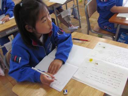 【たんぽぽのちえ】を読んで、ここでいう【知恵】は何か考えました。発表した意見が黒板に書いてあり、それを見ながら考えを深めます。【たんぽぽのちえ】はどんなことだったのか、わかったかな?