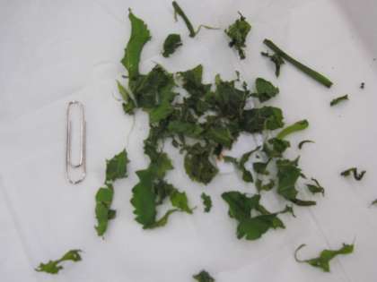 毎年3年生が総合的な学習の中で【カイコ】を育てます。先日、卵が届いたと思ったら、今朝はもう小さな【カイコ】になっていました。3年生が大慌てで校庭の桑を取ってきてあげました。よく見てください。この中にたくさんいるんです。