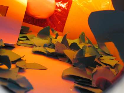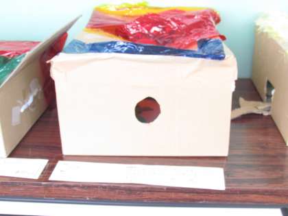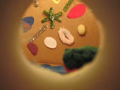 【のぞいてみると】という図工作品が教室前の廊下に展示してあります。大きめの箱の中に自分が想像した世界をそれぞれがつくりました。小さな穴から覗いてみると、タイトル通りの世界がそこにありました。