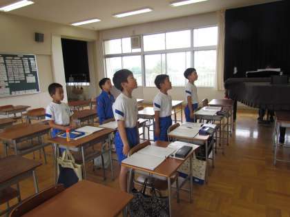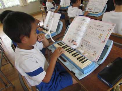 【ドレミファソラソ】と階名で歌っています。それから指を上手に使って、鍵盤ハーモニカを弾くことができました。