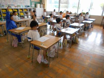 ひらがなの学習もいよいよ終盤になり、残りわずかになりました。今日は「れ」です。前に学習した「わ」や「ね」を思いだしながら、丁寧に形良く書いていました。