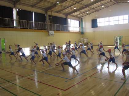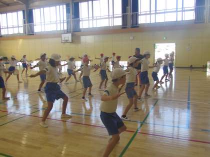 9月11日(水)授業風景〜2校時3.4年体育〜 公開日 2024/09/11 更新日 2024/09/11 2025できごと 今日も朝から暑くなっています。十分な熱中症対策をして、体育館で運動会の練習をしています。3.4年生は表現の練習に本気で取り組んでいて、音楽に乗って体を大きく動かしていました。やる気が見ている方にも伝わってきて、練習の段階から感動の作品に仕上がってきています。