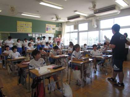 今日から陸上練習をスタートさせるはずでしたが、熱中症警戒アラートが出ているため、今日の練習は中止になりましたが、昼休みには5.6年生が集まって【陸上オリエンテーション】を行いました。