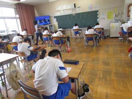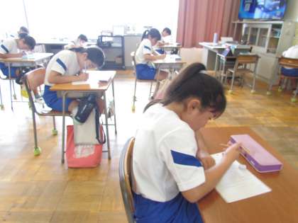 9月18日(水)授業風景〜4校時5年国語〜 公開日 2024/09/18 更新日 2024/09/18 2025できごと 国語の授業の前に必ず漢字のテストをしています。今日の5問も難問だったようで、頭を一生懸命ひねって考えて書いていました。