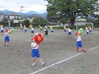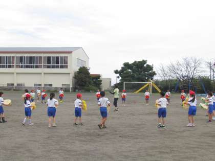 9月19日(木)授業風景〜3校時1.2年体育〜 公開日 2024/09/19 更新日 2024/09/19 2025できごと 続いて、1.2年生が【花笠】を持って、本番さながらに踊ることができました。鈴の音がかわいらしく校庭に響いています。