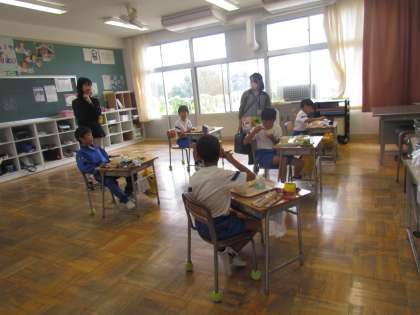 給食センターの方にお世話になり、【早寝・早起き・朝ご飯】について考えました。先日もヤクルトさんに教えていただいたので、話の内容がよくわかり、お家で実行しているのではないでしょうか?みんなよくお話を聞き、もりもり給食を食べていました。