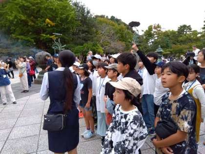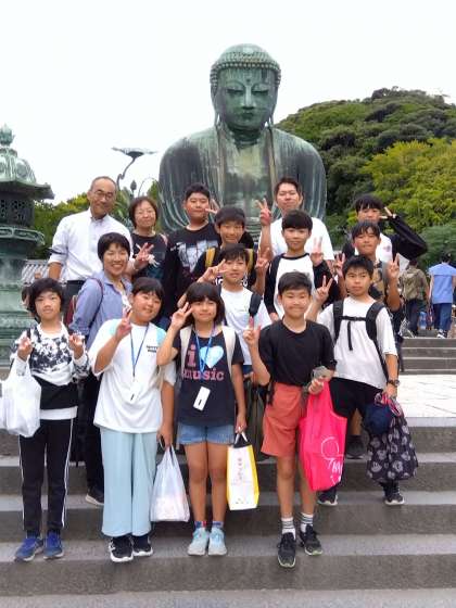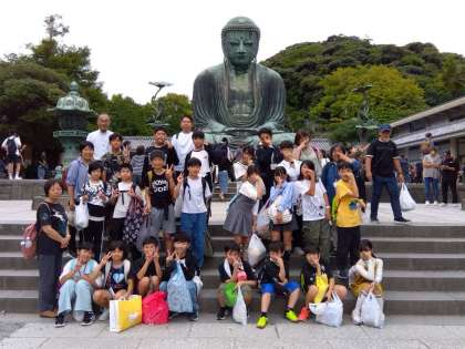 全員無事高徳院に着きました。記念写真を撮ったり、ガイドさんから大仏の説明を聞いたりしました。これからホテルに向かいます。