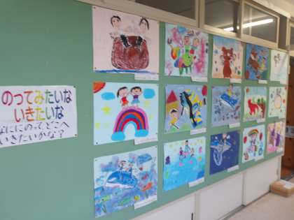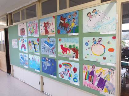教室の前には東小っ子の作品が並びました。どれも力作揃いで、見がいがあります。その子の個性がたっぷりと表れています。