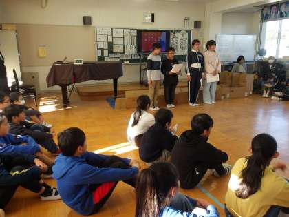 今回は特別支援学校の方々に来てもらい、交流しました。そのために5年生はずいぶん前から特別支援学校の子達が楽しく遊べるように考え、準備をしてきました。今日は一緒に時間を過ごして、たくさんの交流をし、心が温まる時間になりました。