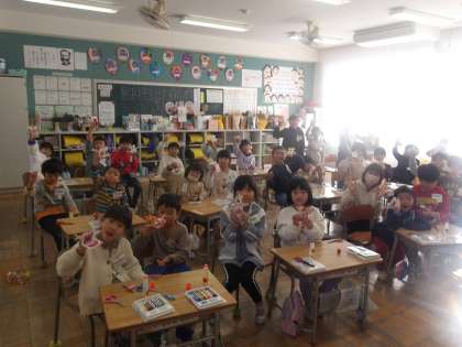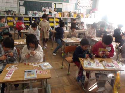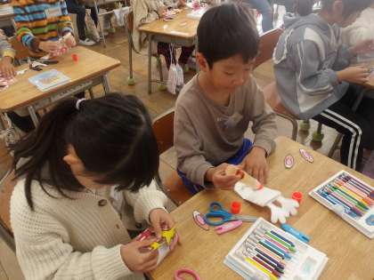 1.2年生が合同で、2学期最後の【外国語】の授業でした。かわいいトナカイを一緒に作り、とても楽しそうでした。