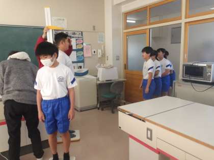 半そで半ズボンで「身長・体重」を測ります。2学期の最初からどのくらい成長したでしょうか?体も心も東小っ子は3学期も日々成長していきます。