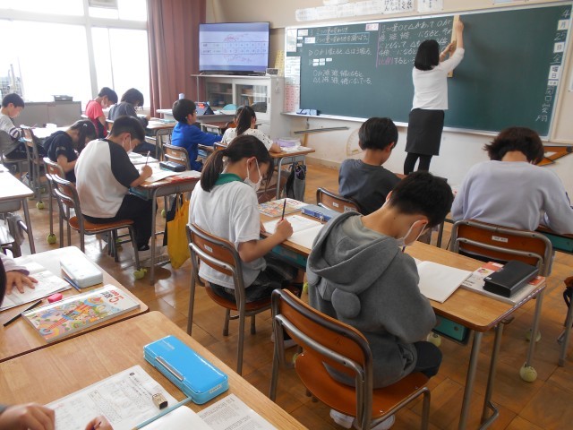 5年生は算数【2つの量の変わり方】の学習でした。2つの量の変わり方を調べ、【比例】という言葉を知りました。