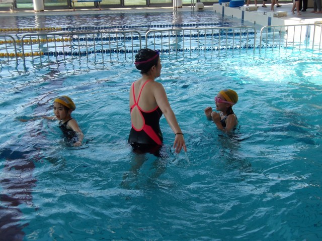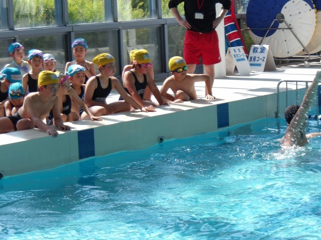 今日からみずとぴあで【水泳学習】がスタートです。午前中は2年生が、午後は3年生が3班に分かれ、インストラクターの先生から泳ぎ方を教えてもらいました。よくお話を聞き、他の学校の子達と一緒に楽しく取り組んでいました。