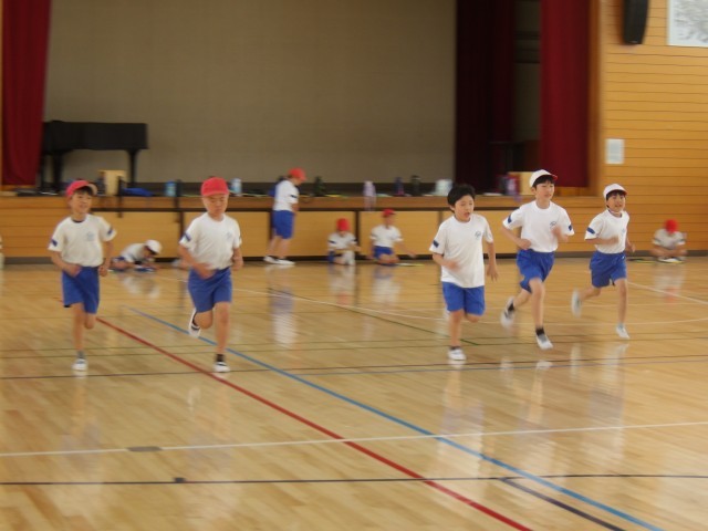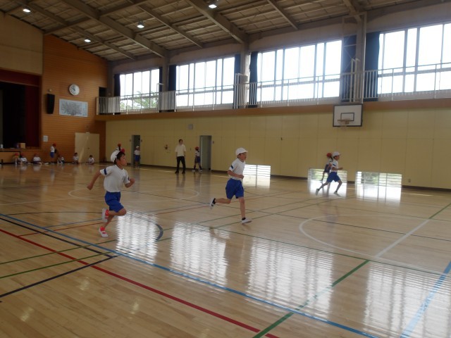 体力テストの最後の種目【シャトルラン】です。音が鳴っている間に20Mの線の間を走り続けます。これも自分に挑戦する時間です。終わった後はみんな顔を真っ赤にし、汗を流し、疲れた様子でしたが、満足した様子で教室に戻っていきました。みんなよくがんばりました!
