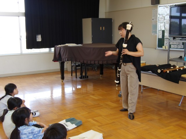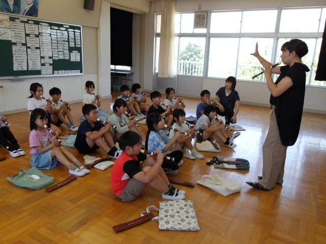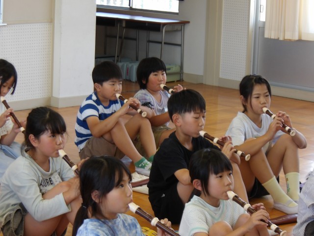 3年生からリコーダーが始まります。今日はリコーダーの先生に来てもらい、リコーダーの音の出し方やタンギングの仕方など、たくさんのことを習いました。また、先生に大きなリコーダーからとても小さなリコーダーまで、素晴らしい演奏をしていただき、目を丸くしながら聞いていた3年生でした。リコーダーの先生のようにすてきに吹けるようになるといいですね。