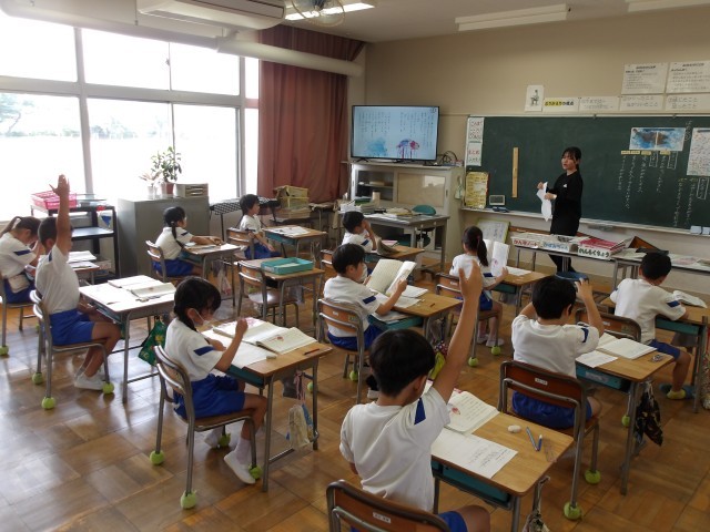 【スイミー】2年生の国語の学習は、「スイミー」です。教科書をしっかりと読み取りながら、場面の出来事を確認しています。