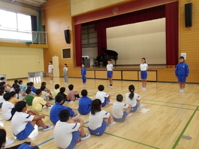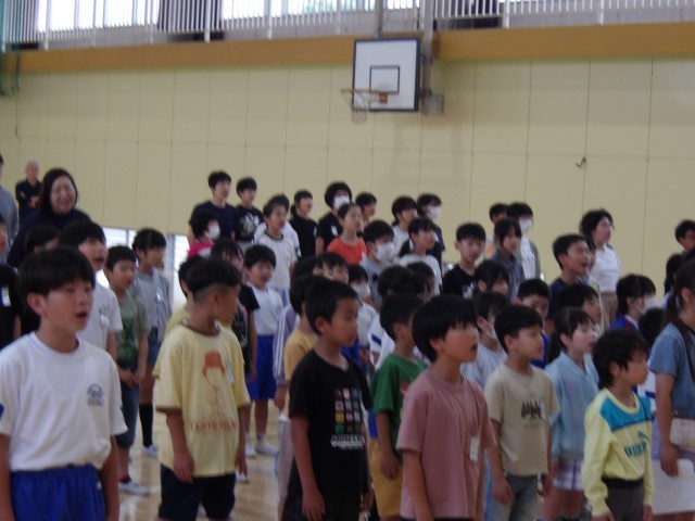 朝は【人権旬間】のまとめとなるエンディング集会を行いました。まずは人権ソング【ビリーブ】を東小っ子全員で合唱しました。体育館にいい声が響きました。