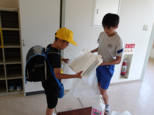 今朝は【資源回収】を行いました。【ペットボトルキャップ・牛乳パック】を集めています。こちらも昨日と同じようにたくさんの東小っ子が持ってきてくれました。どうもありがとう!
