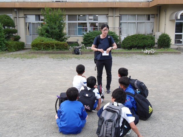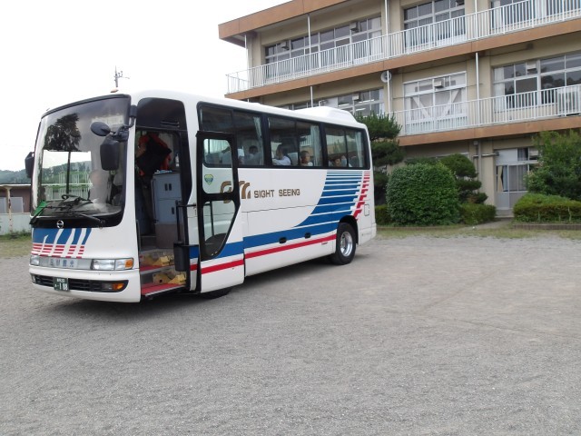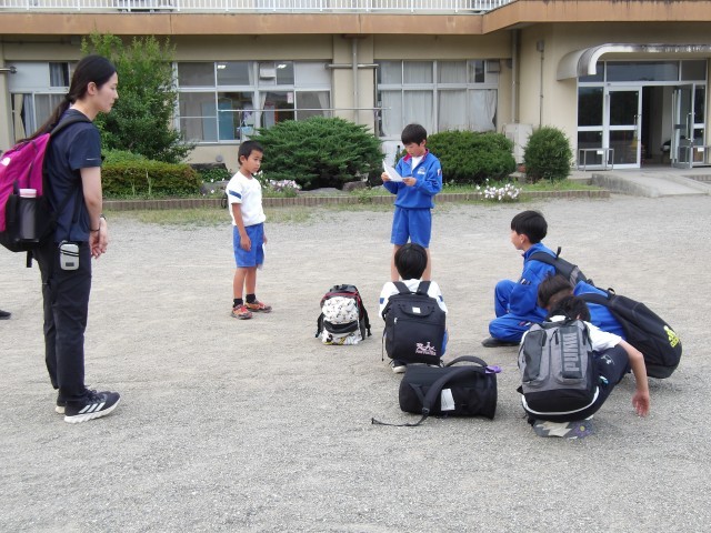 4年生、お帰りなさい!時間より少し早く帰ってきました。楽しく行ってこられたようでよかったです。お家でたくさんお土産話をしてくださいね。