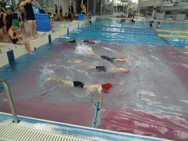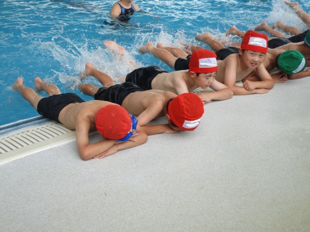2年生は2回目の水泳学習です。やっぱり水の中は気持ちよく、とても楽しそうに取り組むことができました。