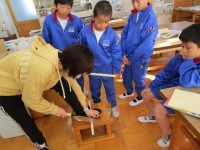 先生のやり方を見て大切なことを聞いてから、のこぎりを初めて使い、木を切りました。...