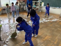 ほうきのはき方とちりとりの使い方を学びました。これからの掃除では、ほうきで掃くこ...