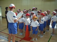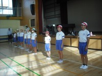 校庭に全員が集まって、初めて運動会の全体練習を行いました。まずは並び方を確認し、...