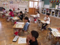 校庭探検をして見つけたものを、カードに書きました。それをみんなの前で発表しました...