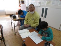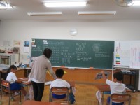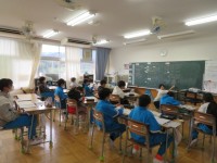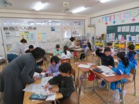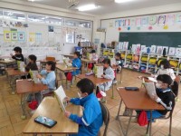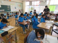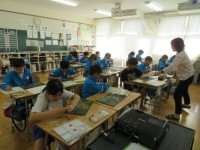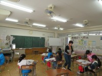 教室から楽しそうな元気な英語が聞こえてきます。ときには歌、ときにはリズムに合わせて児童の大好きなフルーツの名前が聞こえてきます。教室に入ると、ペアになって、"What do you want?" "...